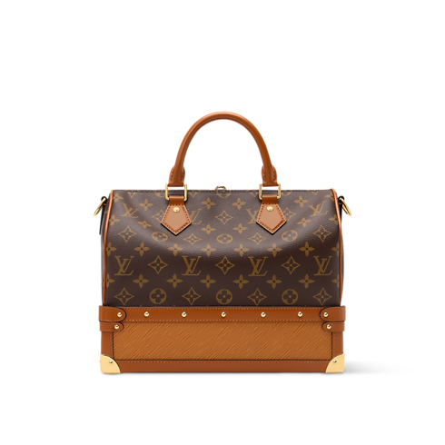 The original Speedy 30 was designed to celebrate freedom of expression and travel, and this Out Of The Trunk edition is no exception. It honors archival Louis Vuitton luggage with its sturdy leather base and metallic corners, while the upper half showcases the House’s signature Monogram pattern. Sized to fit the essentials, it also includes a flat pocket on the inside.