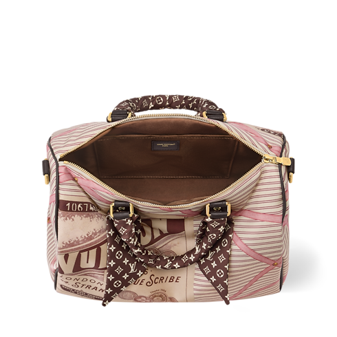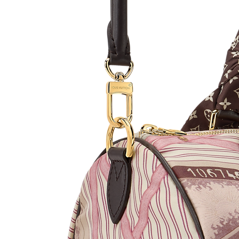 This edition of the Speedy Soft 30 is part of the Inside LV animation, showcasing a colorful blend of textile trims and prints to create a truly unique design. It is topped with a Monogram-patterned handle, and also comes with a detachable strap for shoulder carry. Generously sized, it can fit a tablet inside as well as other everyday essentials.