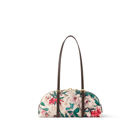 This Squire East West handbag belongs to the Monogram Eden collection. The elongated design is crafted from Monogram Dune canvas printed with a colorful floral pattern and is adorned with a signature gold-toned padlock. It is trimmed with contrasting leather straps, which lend a refined finish, and holds enough space to store daily essentials, including a smartphone.