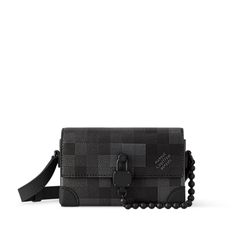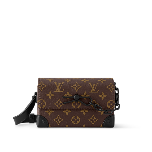 Fashioned from Monogram Eclipse canvas, the Steamer Wearable Wallet is inspired by the House’s Steamer trunk with its emblematic chain-and-pin closure. Just the right size to transport essentials, it features an inside zipped pocket. The adjustable strap ensures comfortable wear.