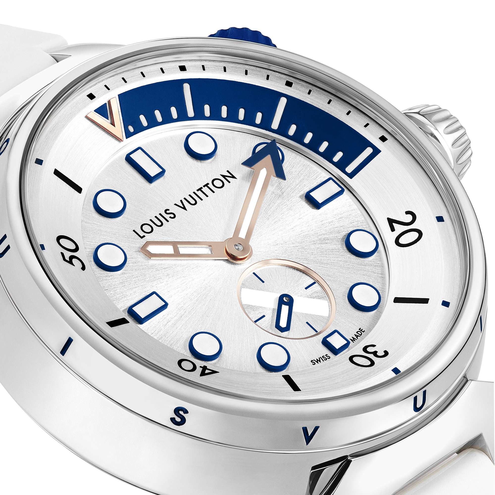 - Interchangeable rubber strap equipped with Louis Vuitton-patented system