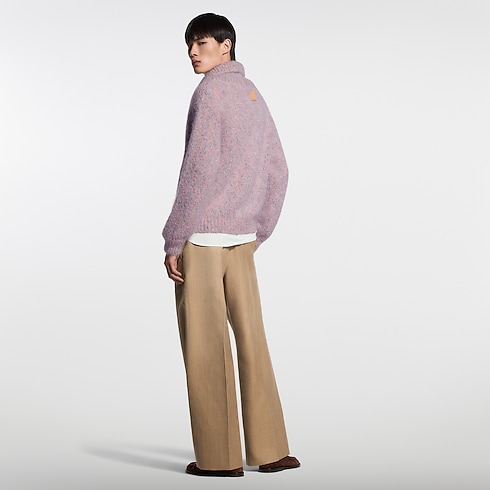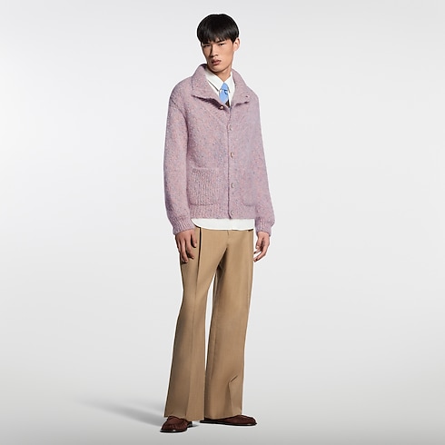 Effortless elegance defines this light mohair cardigan from the Spring-Summer 2026 show. Inspired by effortless Indian sartorialism, the chunky knit in dusty pink yarn has a speckled tweed effect. This is a versatile layering piece that can be worn over a t-shirt or under a blouson, combined with this season’s subtle and understated tones.