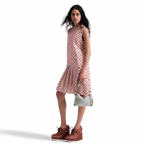 This dress is crafted from crease-resistant silk crepe de chine in a soft seasonal shade featuring an allover Monogram motif in a graphic washed finish. The body is cut with clean lines in a straight fit, while boxy pleats add romantic volume to the skirt. Fastened at the back with an exposed half-zipper.