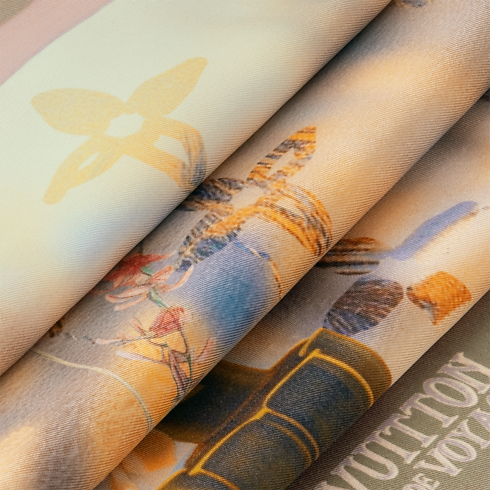 Featuring a sunlit scene that evokes Miami and its optimistic palette, the Window View Square showcases a rich narrative inside a window-like frame, featuring House signatures on the glass's condensation. Instantly recognizable elements adorn a fragrance bottle, teapot, cup, and vase as a toast to the art of everyday living.