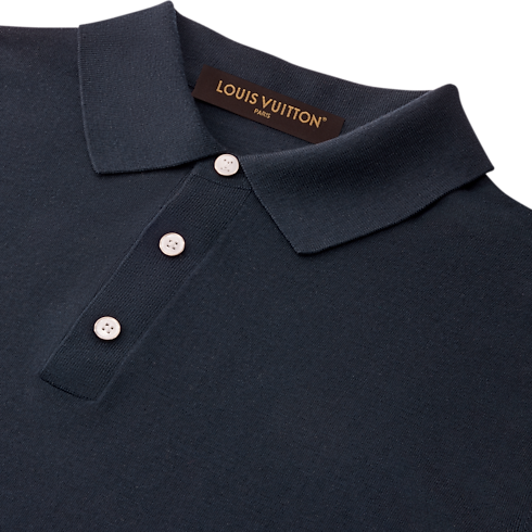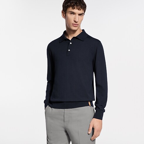 Discreet luxury defines this navy blue long-sleeved polo shirt, with a superfine knit blending merino wool, silk and cashmere for superior softness and durability. A signed VVN leather tab on the left hem evokes the House’s trunk-making heritage. This exclusive piece can complete a wide array of looks, from formal to weekend ensembles.