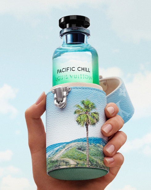 For Pacific Chill, artist Alex Israel mirrors the subdued hues of the mesmerizing Californian landscape. The new “impression of the morning sun” painting envelopes the fragrance travel case in a tranquil palette, imbued with a regenerative vigor.