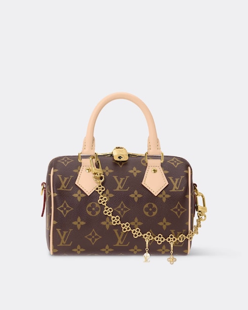 Des charms éclatants au ton doré, suspendus à des chaînes assorties, composent la collection LV Charms — une série de bijoux de sac, bracelets et colliers ornés des emblèmes héritage de la Maison, conçus pour insuffler une touche audacieuse et personnelle aux silhouettes du quotidien.