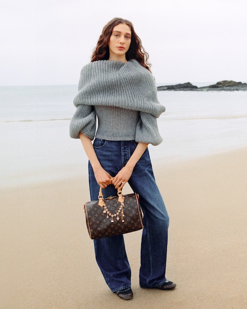Des charms éclatants au ton doré, suspendus à des chaînes assorties, composent la collection LV Charms — une série de bijoux de sac, bracelets et colliers ornés des emblèmes héritage de la Maison, conçus pour insuffler une touche audacieuse et personnelle aux silhouettes du quotidien.