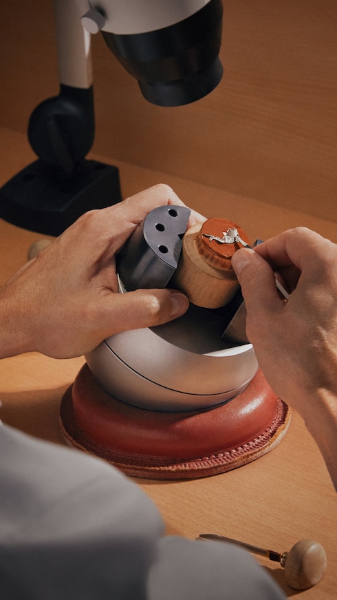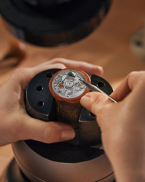 Entre des mains habiles, la gravure devient une forme d'expression artistique où le tracé de fines lignes, reliefs et volumes aux ombres subtiles donne vie et profondeur aux décors des cadrans, boîtiers et composants des mouvements. Pour sculpter le métal et atteindre le niveau de détail de cette technique traditionnelle, de nombreux outils, comme le burin, accompagnent le maître graveur. Les somptueux motifs gravés deviennent alors des empreintes intemporelles.
