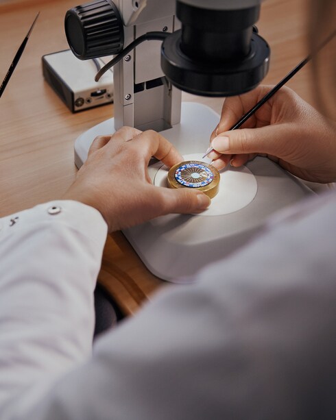 Illustration d'une maîtrise et précision exceptionnelles, la peinture miniature magnifie les cadrans de scènes minutieuses à travers une maîtrise absolue du pinceau — paré d’un seul poil d’une épaisseur inférieure à un dixième de millimètre. Sélectionnant la palette de couleurs la plus expressive, l'artisan exalte avec une patience et un sens du détail hors pair toutes les nuances d’une vision créative singulière.