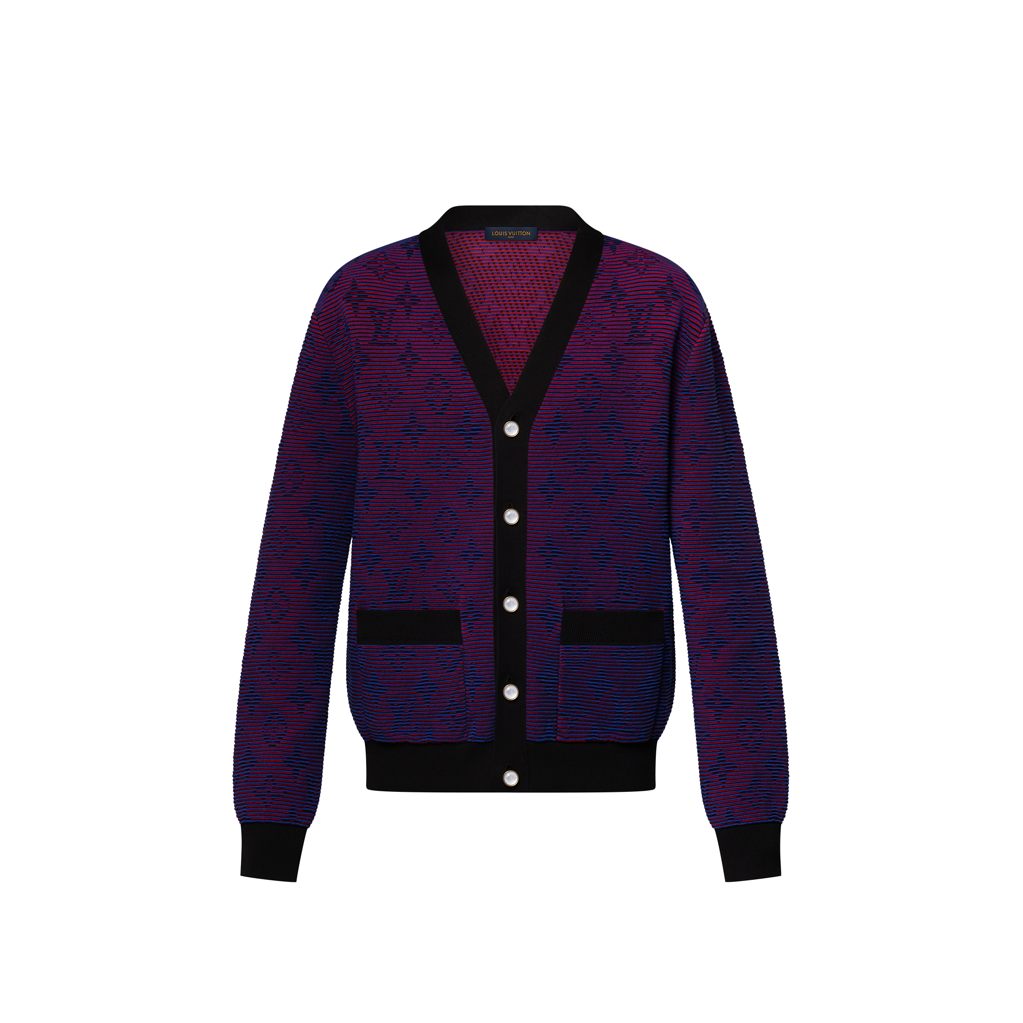 La collection propose des pulls col rond, des sweatshirts à capuche, des cardigans ou des vestes zippées en maille aux accents dandy, signés par Pharrell Williams pour Louis Vuitton.