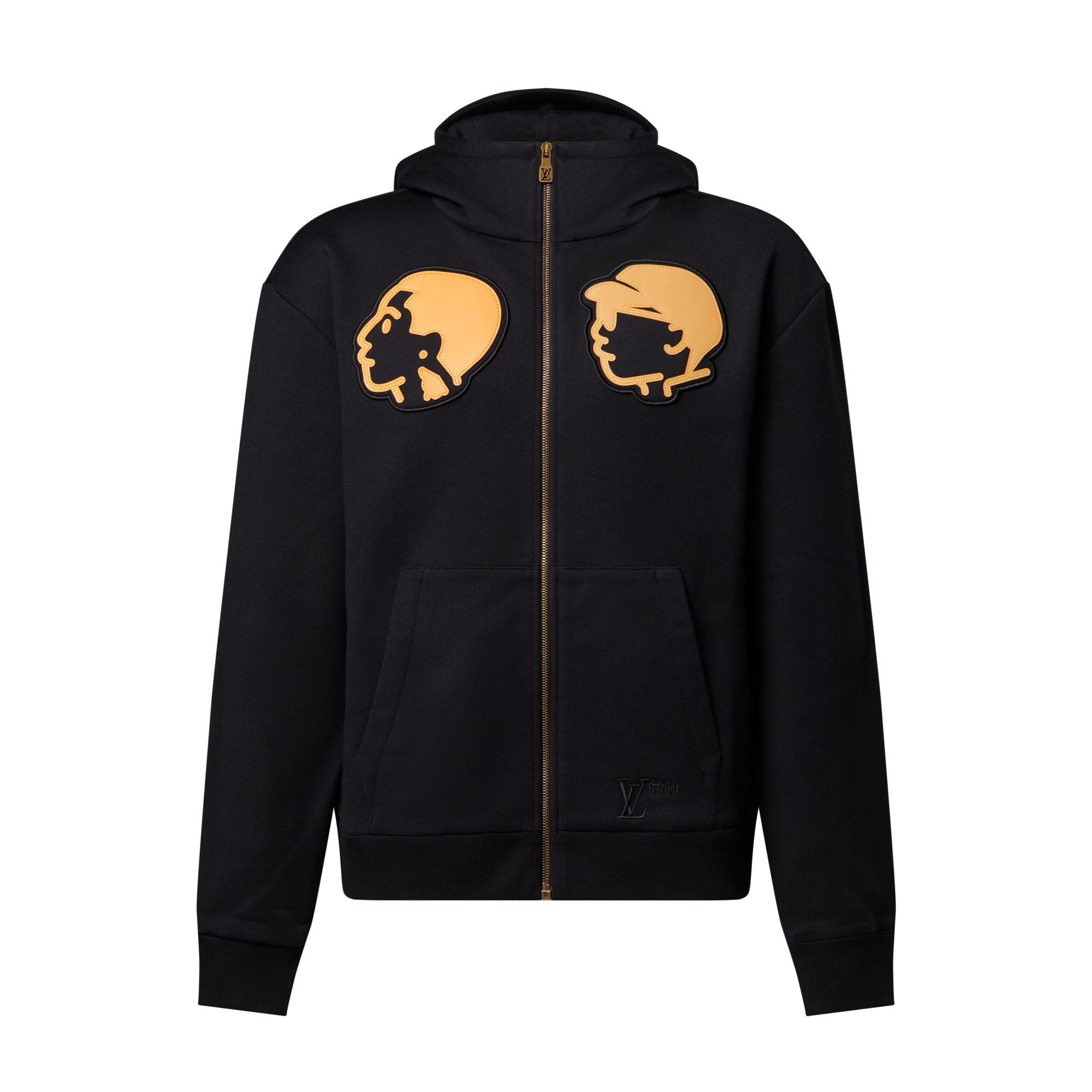 La collection propose des pulls col rond, des sweatshirts à capuche, des cardigans ou des vestes zippées en maille aux accents dandy, signés par Pharrell Williams pour Louis Vuitton.