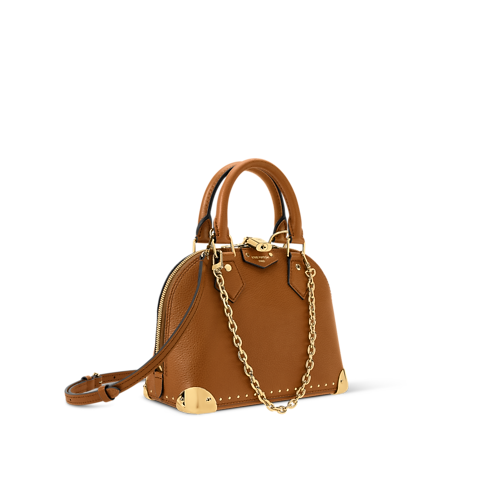 Cette édition du sac Alma Trunk BB se décline en cuir de veau lisse intemporel. Elle se distingue par ses pièces métalliques dorées étincelantes, telles qu'un cadenas emblématique, une chaîne décorative et des coins inspirés des malles. Élégante et astucieuse, elle présente un format idéal pour accueillir les indispensables du quotidien et comprend une poche plate où ranger un porte-cartes ou de petits objets en toute sécurité.