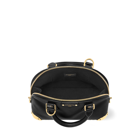 Cette édition du sac Alma Trunk BB se décline en cuir de veau lisse intemporel. Elle se distingue par ses pièces métalliques dorées étincelantes, telles qu'un cadenas emblématique, une chaîne décorative et des coins inspirés des malles. Élégante et astucieuse, elle présente un format idéal pour accueillir les indispensables du quotidien et comprend une poche plate où ranger un porte-cartes ou de petits objets en toute sécurité.