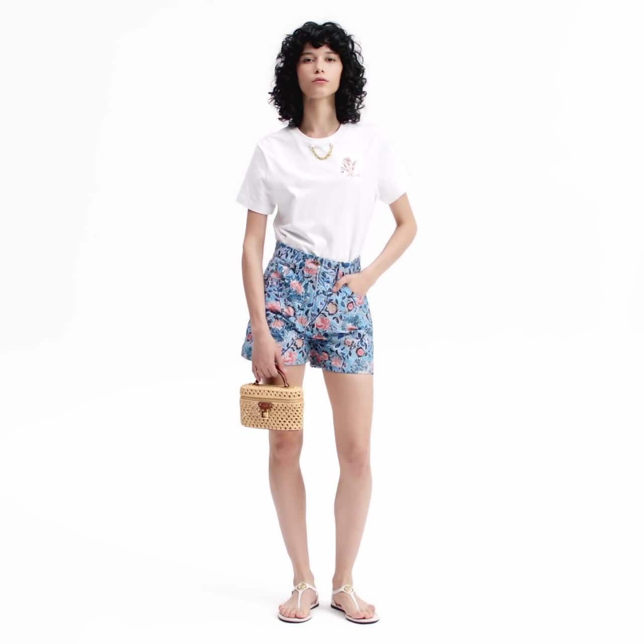 Essentiel de la garde-robe, ce tee-shirt intemporel est conçu en jersey de coton structuré. Confortable et décontracté, il adopte une coupe classique avec des manches courtes et un col rond côtelé rehaussé d'un ornement chaîne LV. Signature romantique de la saison, les LV Initiales en broderie anglaise agrémentent la poitrine avec discrétion.