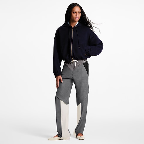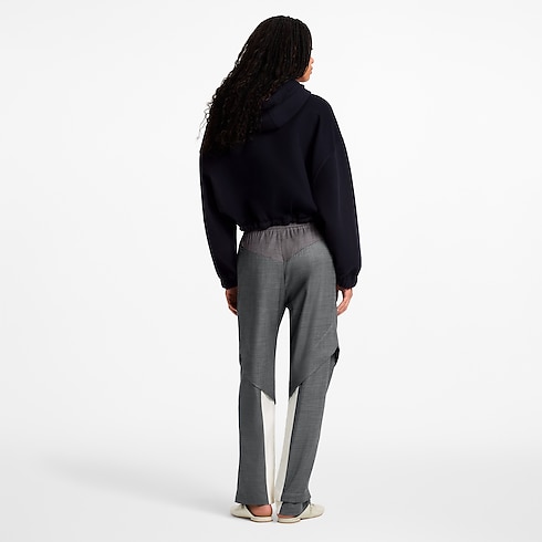 Confectionné en laine de costume, ce pantalon de jogging élégant se distingue par des empiècements color-block sportifs contrastés et des détails Monogram graphiques sur les poches latérales. Des coutures apportent de la structure aux genoux, tandis que la taille ajustable se dote d'un cordon. Ce modèle présente plusieurs poches à fermeture et une signature métallique LV Twist sur la hanche.