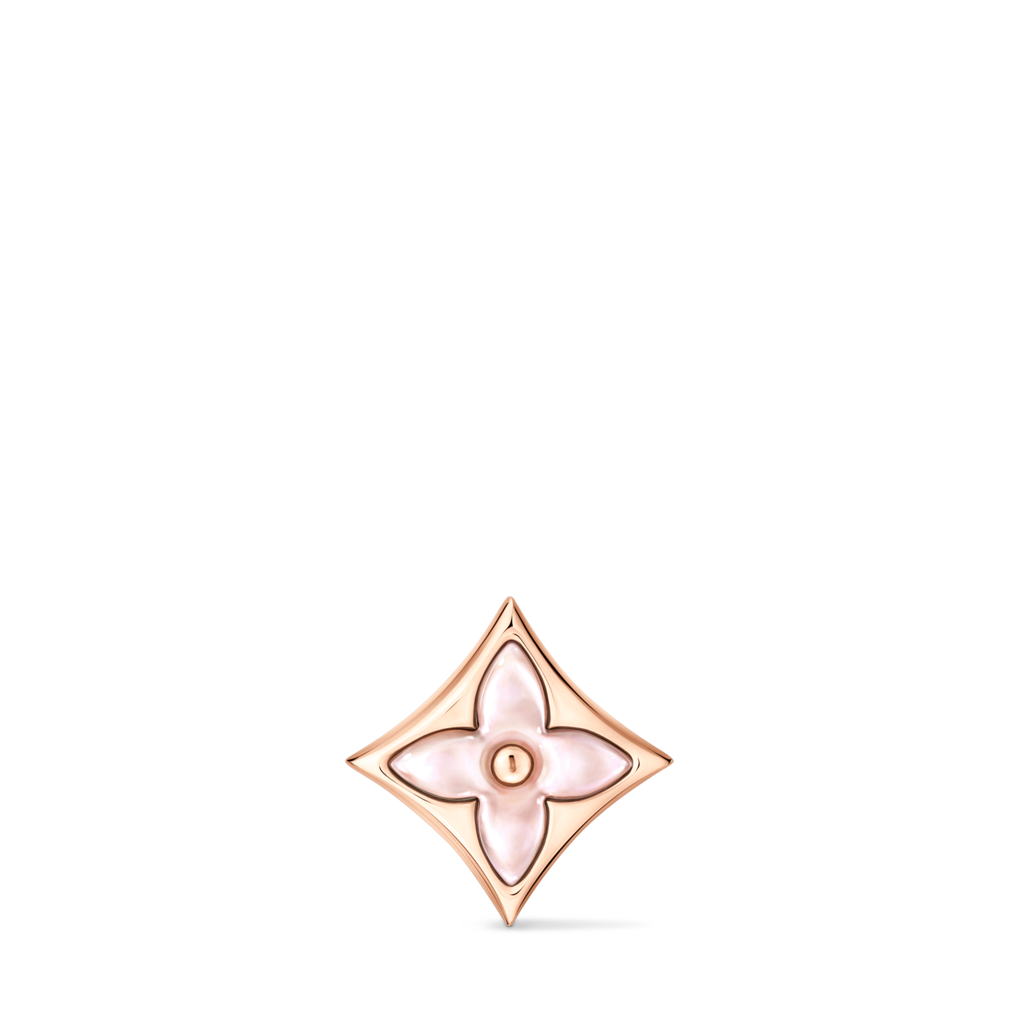 Le design créatif de cette bague Mini Sun Color Blossom évoque le motif Monogram emblématique, imaginé par Georges Vuitton en 1896. L'anneau ouvert en or rose est surmonté d'un diamant étincelant et d'une fleur de Monogram arrondie, délicatement sculptée en nacre rose. Ce bijou élégant et précieux rend hommage au savoir-faire expert de la Maison.