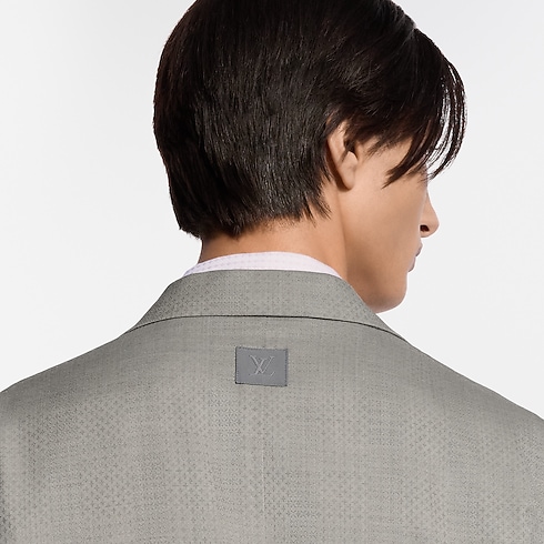 This pale beige single-breasted Napolitana jacket is cut from fine virgin wool featuring a delicate tone-on-tone jacquard Micro Flower Damier motif and pearly signature buttons. The soft, Italian-inspired tailoring creates an effortlessly elegant silhouette. Paired with slender cigarette pants, it makes a refined and modern suit that can be styled for business occasions, elegant summer evenings or weddings.