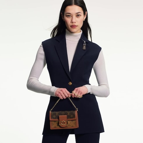 Confectionné en toiles Monogram et Monogram Reverse, ce portefeuille chaîne Dauphine adopte les détails emblématiques de la collection éponyme : esthétique vintage, garniture en cuir de veau et fermoir LV Circle. Compact mais spacieux, ce modèle se dote d'une chaîne dorée amovible qui offre plusieurs options de porté.