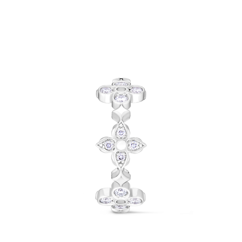 Deux motifs fleur de Monogram se marient pour créer cette bague raffinée issue de la collection Dentelle. Confectionné en or blanc 18 karats poli et serti à la main de diamants, ce bijou actuel et féminin se porte seul ou associé à d'autres pièces des collections Blossom, reconnaissables à la fleur emblématique créée par Georges-Louis Vuitton en 1896.