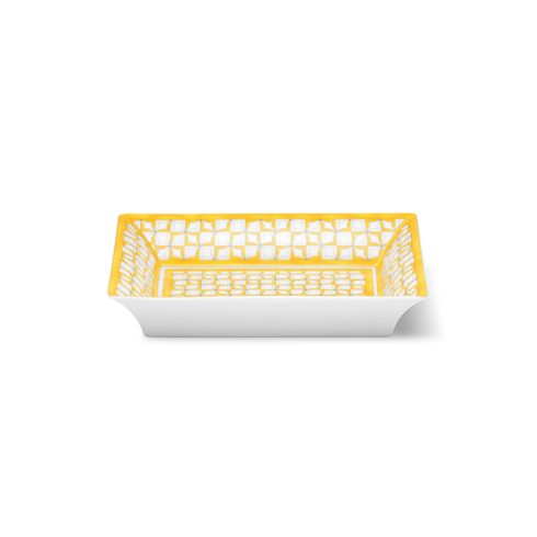Ce vide-poches raffiné Dolce Vita capture l'esprit de la douceur de vivre à l'italienne à travers un design créatif inspiré d'un emblème historique de Louis Vuitton. Son motif remarquable représente une multitude de fleurs de Monogram entremêlées qui se déclinent dans des tons jaunes estivaux sur une porcelaine de Limoges somptueuse. Cette pièce sera parfaite pour apporter une note joyeuse et ensoleillée à une décoration élégante.