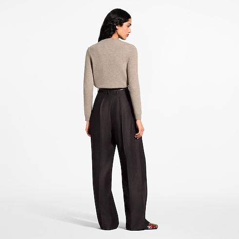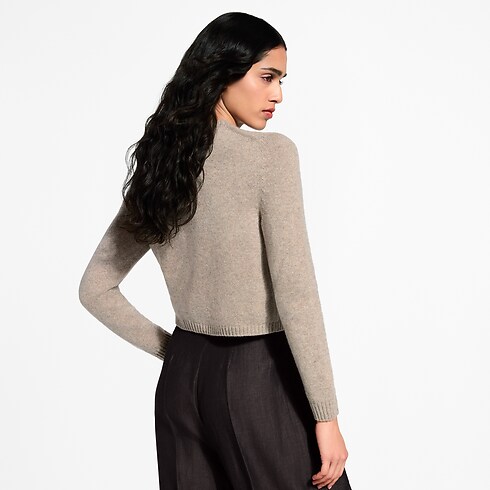 S’inspirant de l’esprit romantique du défilé, ce cardigan se distingue par un détail en guipure florale qui sublime l’épaule gauche dans des couleurs vives. Confectionné dans une maille de cachemire somptueuse aux teintes discrètes, il est agrémenté de boutons transparents pour offrir une finition contemporaine, tandis qu’une languette LV Circle signe discrètement le poignet.