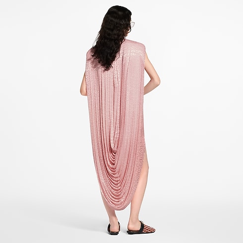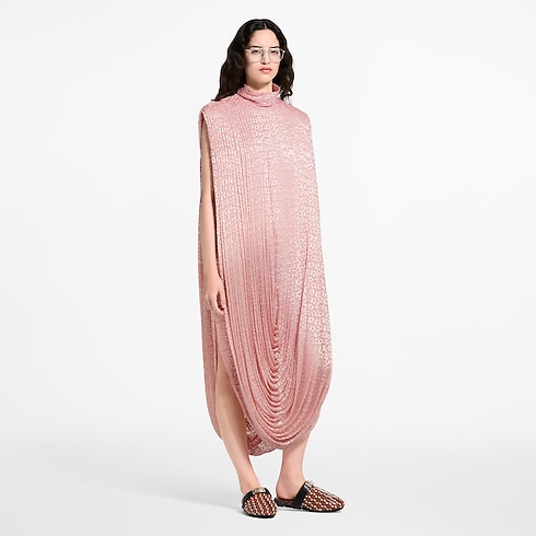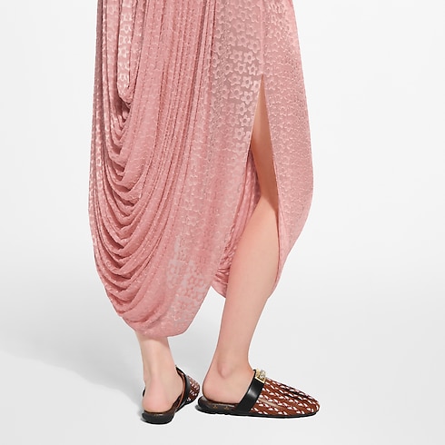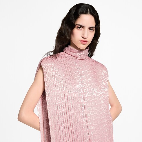 Rendant hommage à la splendeur de la décoration intérieure, cette robe remarquable issue du défilé incarne un savoir-faire d’exception. Elle attire la lumière grâce à son velours dévoré brillant orné d’un imprimé fleuri raffiné. Le travail sophistiqué des plis sur les épaules souligne la fluidité et le mouvement de cette silhouette drapée. Un col montant discret complète l’ensemble d'une note structurée.