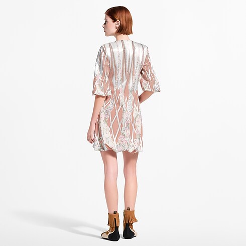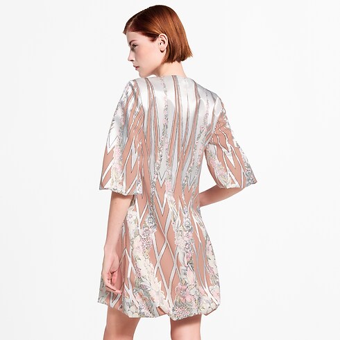 Cette robe courte présente une silhouette chic à manches trois-quarts, ainsi que des fronces autour de l’ourlet de la jupe qui lui apportent un volume ludique. Issue de la collection Défilé qui rend hommage aux intérieurs, son imprimé fleuri évoque le raffinement d'une décoration classique. L'ensemble est complété par deux poches sur les côtés et une doublure en soie confortable et élégante.