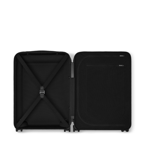 Cette valise Horizon 55 à roulettes est réalisée en toile Monogram Midnight, une interprétation monochrome raffinée du motif emblématique. Ses coins renforcés, sa poignée supérieure et sa canne télescopique en cuir noir légèrement grainé s’associent harmonieusement aux pièces métalliques du même ton. Ce bagage cabine dévoile un intérieur parfaitement plat et spacieux grâce au système de canne extérieure.