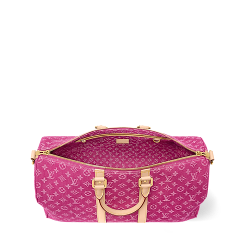Inspiré d’un coloris issu des archives de la Maison, ce sac Keepall Bandoulière 45 se décline dans une version en denim Monogram fuchsia, une matière naturellement élégante qui rehausse tous les looks d'une note colorée. Le cuir de vache naturel sur les bandes latérales et les poignées supérieures sublime son design classique, tandis que la bandoulière amovible et ajustable permet différentes options de porté.