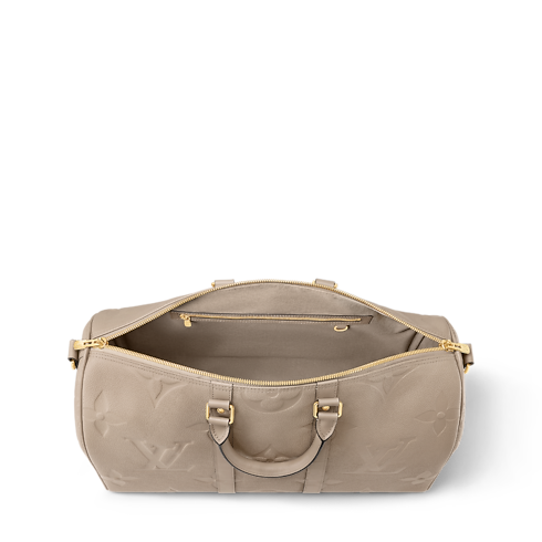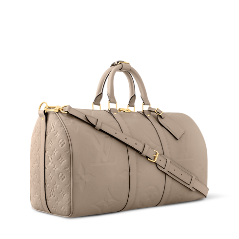 Ce célèbre sac Keepall Bandoulière 45 est revisité pour 2022 dans une teinte gris tourterelle féminine et élégante. Le cuir de qualité supérieure est embossé d'une version oversize du motif Monogram emblématique de la Maison. Doté d'une poignée double et d'une bandoulière ajustable qui permettent un porté confortable, ce modèle est le compagnon idéal de la nouvelle valise cabine Horizon conçue dans la même matière.