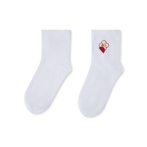 Créées spécialement pour l’Année du Cheval, les chaussettes Vivienne du Nouvel An lunaire offrent une manière ludique et originale de porter la signature de la Maison. Confectionnées en coton mélangé résistant et confortable, elles sont rehaussées de broderies emblématiques : l'une s'orne du visage de Vivienne inspiré de la fleur deMonogram, tandis que l'autre s'agrémente des LV Initiales. Ce modèle ravira les adeptes de Louis Vuitton qui célèbrent le Nouvel An chinois.
