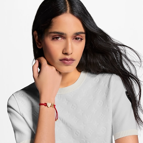 Inspiré des emblèmes de la Maison, ce bracelet LV Bloom Pearl Heart incarne une élégante expression d'affection. Fixée sur un double cordon en cuir, une fleur de Monogram en métal doré brillant est associée à une perle en résine en forme de cœur, subtilement gravée des LV Initiales. Ce bracelet à l'aura romantique envoûtante s'adapte aisément à toutes les tenues.