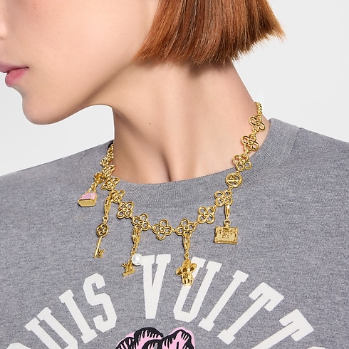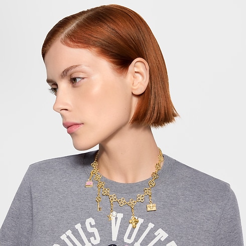 Élégant et ludique, ce choker LV Charms propose une manière originale de porter les signatures de la Maison. Ses maillons ajourés en forme de fleur de Monogram et de LV Circle ont été spécialement conçus pour être personnalisés avec des charms à clipser issus de la collection Petits accessoires de Louis Vuitton. Chaque association donne ainsi naissance à un accessoire résolument unique.