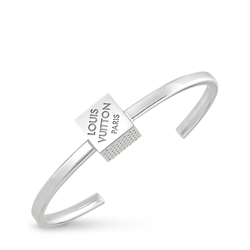 Le bracelet rigide LV Cube en argent sterling s’inspire du jeu de réflexion Pateki, imaginé par Gaston Vuitton en 1932. Sa pièce centrale se compose d’un cube finement façonné, gravé de rayures et de la signature Louis Vuitton Paris, en écho à l’esthétique de la toile Damier emblématique de la Maison. Ce bijou original est empreint d’une élégance ludique et singulière.