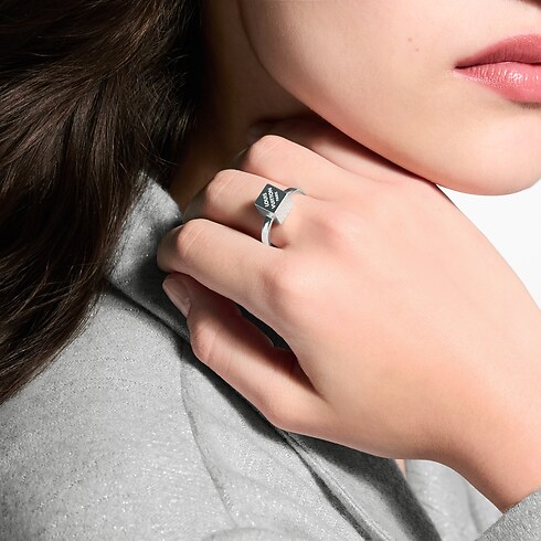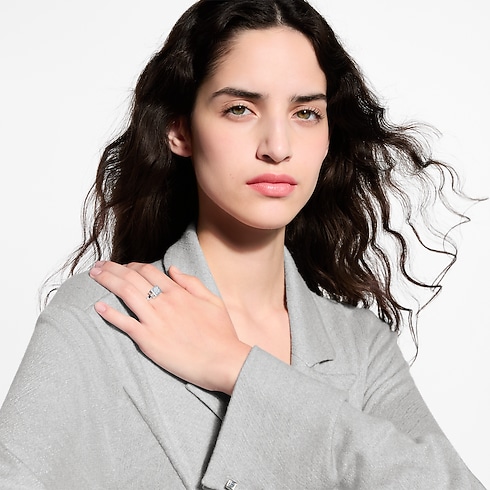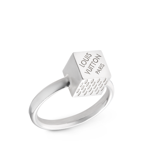 Cette bague d’exception en argent sterling rejoint la collection LV Cube, inspirée du jeu de réflexion Pateki imaginé par Gaston Vuitton en 1932. Sa pièce centrale se compose d’un cube élégamment gravé de la signature Louis Vuitton Paris et de fines rayures évoquant la toile Damier historique de la Maison. Cette création saisissante apporte une note de sophistication et d’éclat à la silhouette.