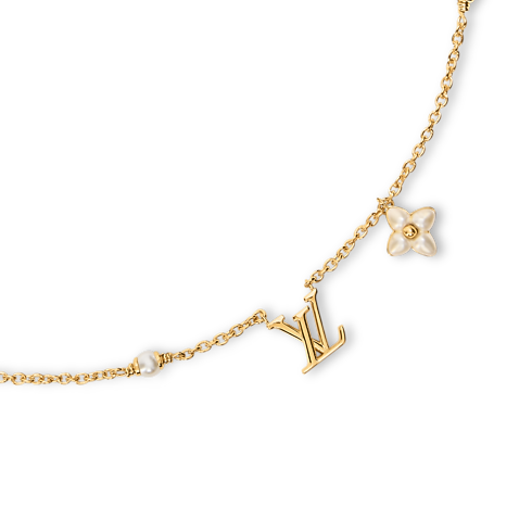 D’une élégance remarquable, le collier LV Floragram XS s’inspire des icônes chères à la Maison et de la beauté intemporelle de la perle. Sa chaîne fine en métal doré accueille des pendentifs LV Initiales et fleur de Monogram, accompagnés de huit perles en résine blanche éclatante. Ce collier résolument féminin se porte aussi bien au quotidien que pour une occasion plus habillée.