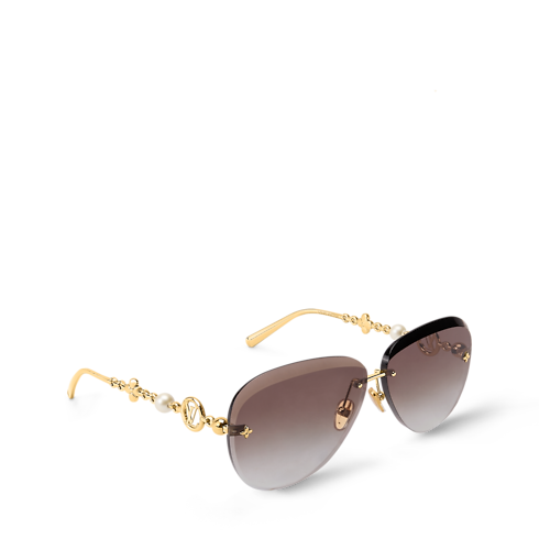 Ces lunettes de soleil aviateur LV Jewel Pearl marient l’élégance intemporelle des perles aux emblèmes de la Maison. Réalisées en métal doré, leurs branches façon bijoux présentent une fleur de Monogram et un LV Circle rehaussés de perles en résine éclatantes. Des clous en forme de fleurs de Monogram sur les verres facettés ajoutent une signature supplémentaire à ces lunettes de soleil chics et sophistiquées.