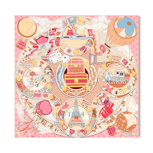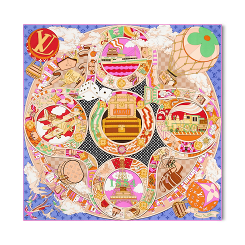 Ce carré LV Journey 90 en soie est une invitation à une aventure hors du commun dans l'univers du voyage. Son imprimé raffiné et original associe des représentations de bagages, montgolfières, trains, bateaux et avions à des dés, des nuages et les motifs Monogram et Damier de la Maison. Le design saisissant et intemporel de ce modèle en fait un accessoire emblématique.