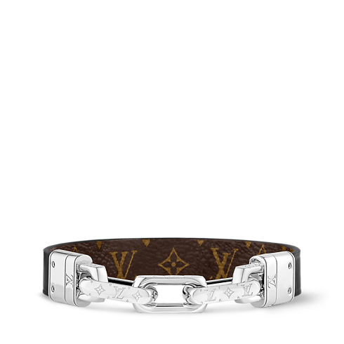 Ce bracelet LV Links présente une lanière en cuir et en toile emblématique de la Maison, associée aux célèbres maillons Monogram. Minutieusement gravées des LV Initiales de part et d’autre, les pièces métalliques argentées signent ce modèle. Audacieux et masculin, ce bijou offre un esprit rock à toute tenue.