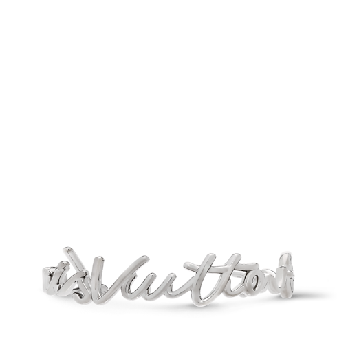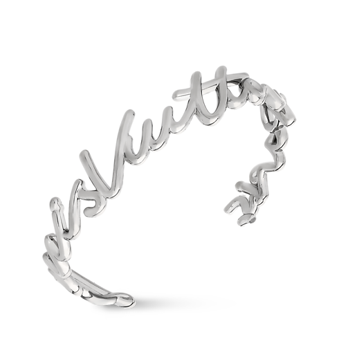 Ce bracelet LV Script au style décontracté-chic s’inspire de la signature manuscrite et épurée de Louis Vuitton, dévoilée pour la première fois lors du défilé Printemps-Été 2025. Il adopte la forme d’un jonc ouvert qui dessine le nom de la Maison en métal brillant couleur palladium. À la fois précieux et confortable, il se porte avec aisance au quotidien comme lors d’occasions spéciales.