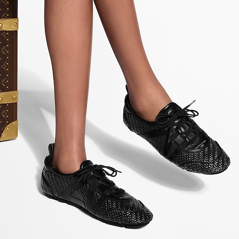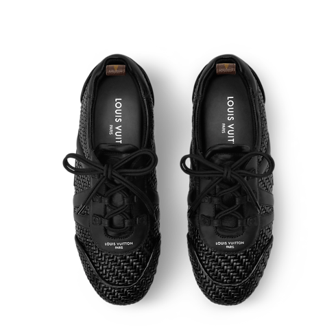 À l'occasion du défilé Louis Vuitton Printemps-Été 2026, le directeur artistique des collections Femme, Nicolas Ghesquière, a revisité cette sneaker LV Sneakerina afin de rendre hommage au savoir-faire d'exception de la Maison. Cette version se décline dans un cuir d’agneau méticuleusement tressé et se rehausse des initiales LV habillées de cuir sur le côté. Elle est sublimée par une semelle extérieure en gomme et une boucle au talon en toile Monogram.