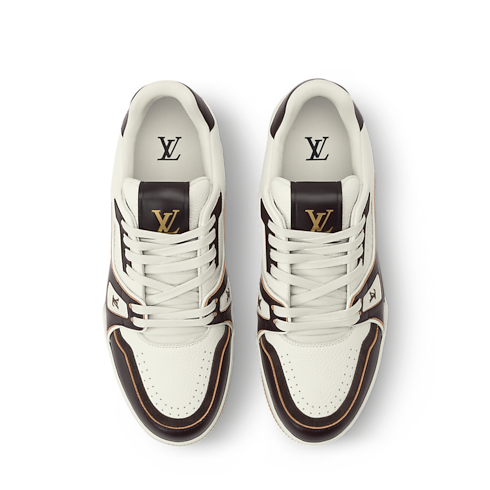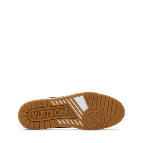 Cette interprétation raffinée de la sneaker LV Trainer associe du cuir de veau grainé à du cuir vieilli, fusionnant matières à l'esprit vintage et design contemporain. Ce modèle iconique, inspiré des sneakers de basketball classiques, se distingue par sa tige élaborée arborant de multiples signatures de la Maison, ainsi que par sa semelle extérieure technique en gomme ornée de fleurs de Monogram.