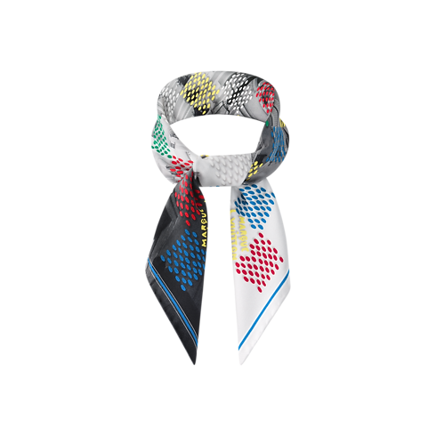 Créé par Pharrell Williams pour la collection Printemps-Été 2025, le bandana en soie LV Vers Damier continue de célébrer le voyage et l'exploration tout en honorant l'héritage de la Maison. Cette pièce intemporelle présente une scène de rues pavées parisiennes surmontée du motif Damier dans une palette de couleurs primaires.