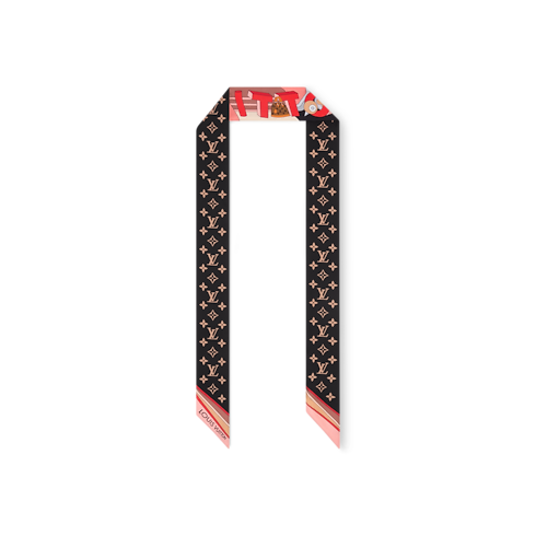 The all-silk LV Wonderland BB bandeau is a colorful ode to creativity and craftsmanship. Its eye-catching pattern depicts a whimsical futuristic landscape accented with Monogram Flowers and iconic Louis Vuitton luggage creations. Outsized letters with a striking 3D effect spell out the House’s name, adding an original signature to this elegant contemporary accessory.