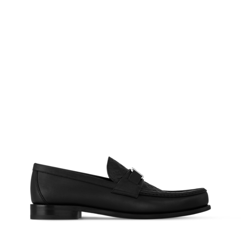 Cette version de l'intemporel mocassin Major se pare de cuir de veau souple. L’empeigne cousue main, élément emblématique du modèle, associe deux signatures de la Maison : un motif Monogram estampé et un accessoire LV Initiales à la finition argentée. Ce modèle repose sur une semelle extérieure en cuir et en gomme, garantissant un confort optimal et durable.