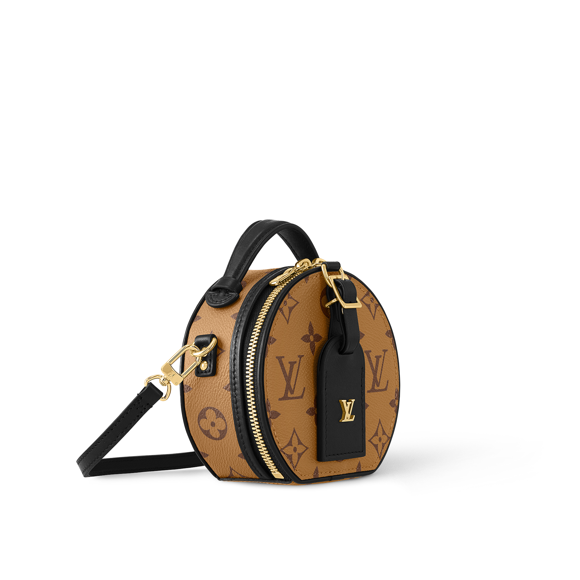 Confectionnée en toile Monogram Reverse, cette Mini Boîte Chapeau se distingue par sa forme et ses détails Louis Vuitton : un porte-adresse en cuir et un intérieur en malletage capitonné. La fermeture à glissière s'ouvre pour dévoiler deux larges compartiments à goussets. Elle peut être portée à la ceinture, à la main grâce à la poignée, ou à l'épaule au moyen de la bandoulière de sac amovible.