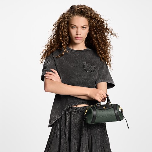 Décliné dans un coloris vert kaki intemporel pour la saison, ce sac LV Biker Nano est une version miniature du modèle LV Biker dévoilé par le directeur artistique Nicolas Ghesquière lors du défilé Printemps-Été 2025. Confectionné en cuir d'agneau pixelisé à la finition grainée bicolore, il présente une garniture en cuir de vache, notamment un plastron rehaussé d'un LV Circle doré. Les lanières sur les côtés permettent de l'agrandir, tandis que l'intérieur révèle une doublure ornée du motif Monogram de la Maison.