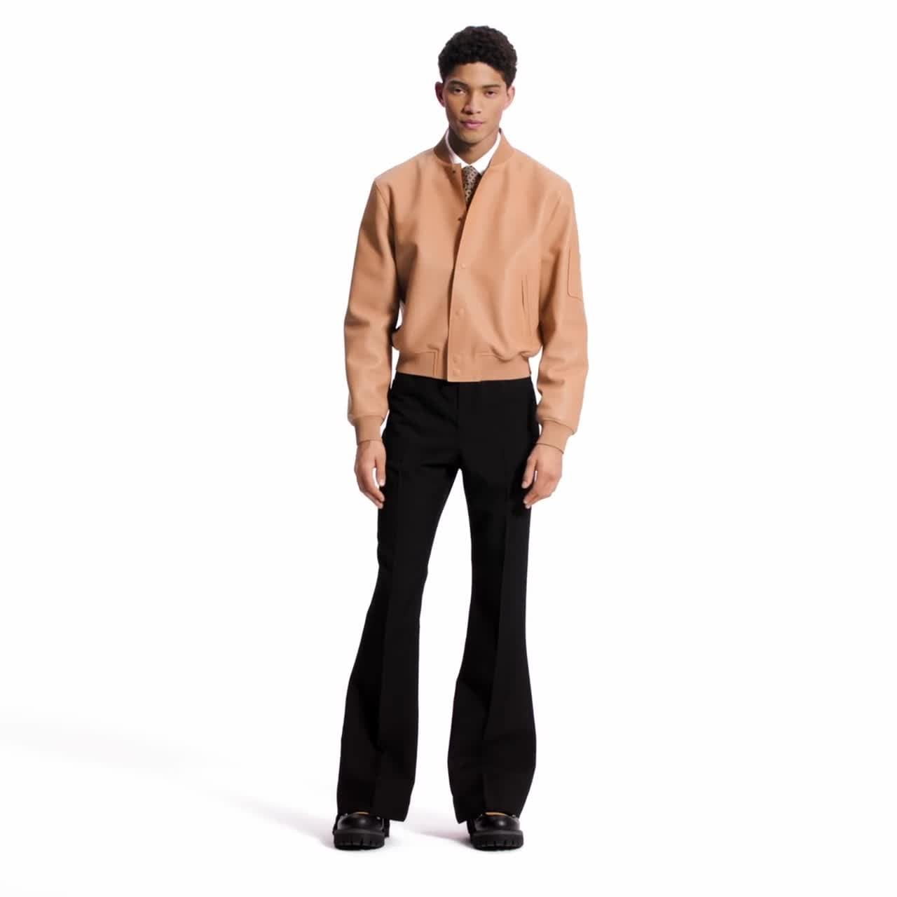 Confectionné dans un cuir de veau ultra-souple de coloris miel, ce blouson court évoque le cuir naturel emblématique utilisé pour les pièces de maroquinerie Louis Vuitton. Des détails discrets tels que des surpiqûres contrastées et des bords teints en rouge soulignent cet effet. Issues du défilé Automne-Hiver 2025, des signatures estampées à chaud agrémentent la poitrine et le dos, tandis qu'une doublure matelassée soyeuse ponctue ce modèle à l'élégance intemporelle.