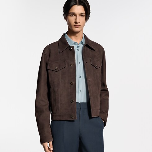 Du cuir de veau nubuck lisse et doux sublime cette veste trucker marron foncé. Le cuir double-face souple lui assure une construction légère qui en fait une pièce incontournable pour la mi-saison. Des boutons en corne gravés de fleurs de Monogram discrètes agrémentent la fermeture, tandis qu’une languette en cuir naturel à l'arrière du col rend hommage à la tradition légendaire de la Maison en matière de maroquinerie.